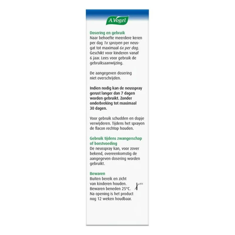 Naar behoefte meerdere keren per dag 1x sprayen per neusgat. Volwassenen: tot maximaal 6x per dag. Kinderen vanaf 6 jaar: tot maximaal 2 à 3x per dag. De aanbevolen dosering niet overschrijden.