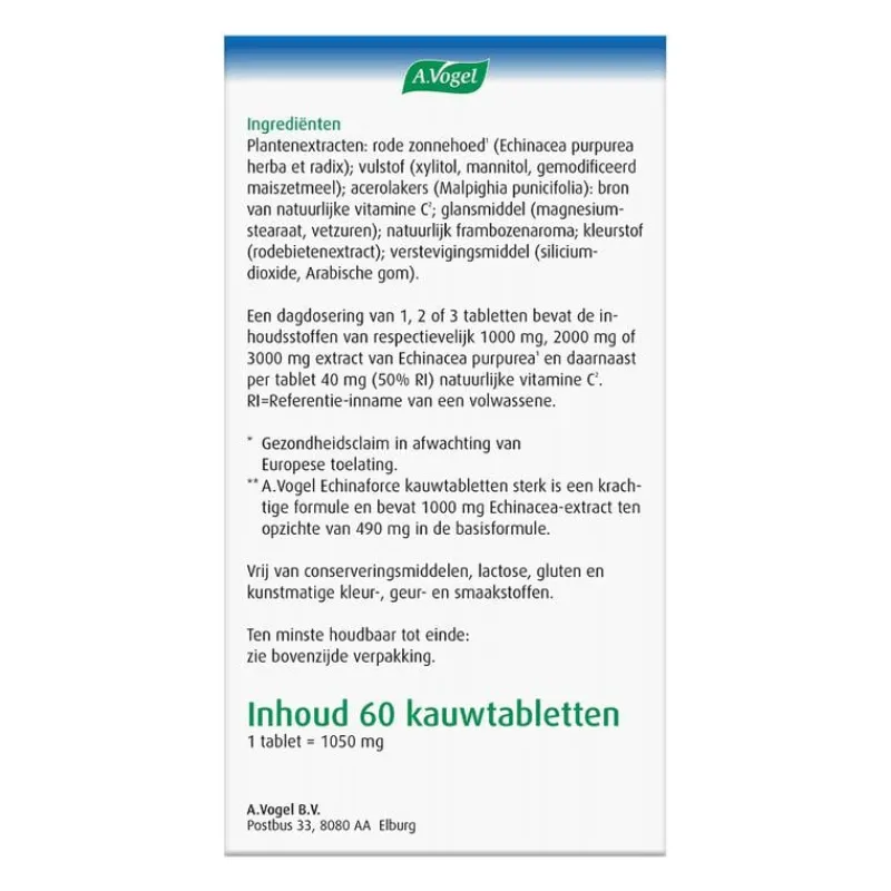 **Echinaforce kauwtabletten sterk zijn gebaseerd op 1000 mg Echinacea-extract t.o.v. 490 mg in de basisformule.