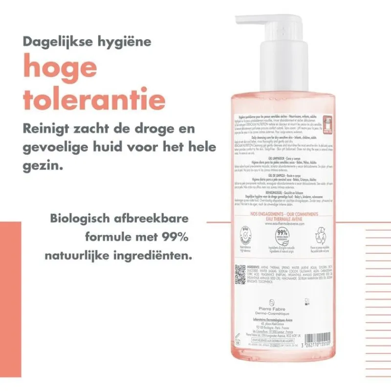 Reinigingsgel voor de gevoelige en droge huid van het hele gezin. Deze lichtjes geparfumeerde dagverzorging met milde reinigende werking wordt uitstekend verdragen door de huid en laat haar comfortabel aanvoelen. De formule van deze reinigingsgel voor gezicht en lichaam bestaat voor 99% uit bestanddelen van natuurlijke oorsprong en is speciaal ontwikkeld om de gevoelige huid in alle zachtheid te reinigen. Deze zeepvrije formule met neutrale pH-waarde heeft een textuur op gelbasis die zich bij contact met water omvormt tot een rijk schuim, dat niet in de ogen prikt en geschikt is voor uitwendig gebruik op de intieme delen van het lichaam.