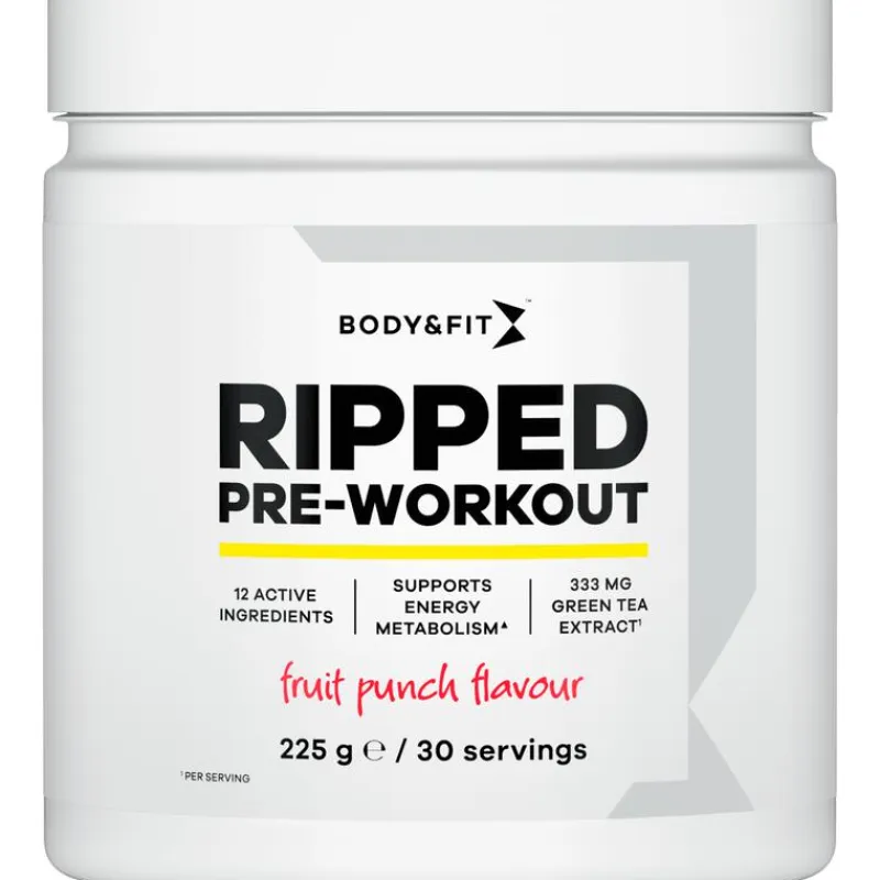 Ripped Pre-Workout is het ultieme 2-in-1 supplement! Deze Body & Fit pre-workout bestaat uit een unieke formule met verschillende werkzame stoffen waaronder cafeïne. Ripped Pre-Workout werkt direct en ondersteund heel je training lang.