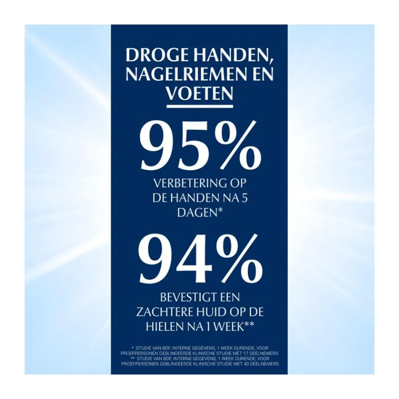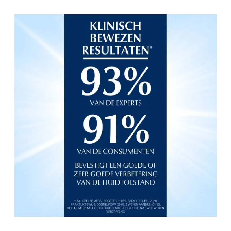 Klinische studies bewijzen dat Eucerin Aquaphor de regeneratie van beschadigde en gebarsten huid bevordert. Deze formule op basis van paraffine (zonder water) helpt de gebarsten huid sneller te herstellen door de ideale omgeving te creëren. Paraffine is een minerale olie die een soort laagje over de huid legt, waardoor er weinig tot niks in en uit de huid kan. De zalf genereert hiermee een beperkt doorlaatbare (semi-permeabele) beschermende laag, waardoor de huid gehydrateerd blijft en het huidherstellende proces versnelt. De actieve ingrediënten Panthenol and Bisabolol zijn beide klinisch bewezen effectief in het herstellen van de gebarsten huid. Eucerin Aquaphor bevat daarnaast Glycerine dat hydrateert en dat de huidbarrière beschermt. Naast haar helende functie, beschermt en verzacht het de huid ook. Klinische studies bewijzen effectiviteit tijdens de behandeling van extreem droge, gebarsten of geïrriteerde huid, veroorzaakt door een dermatologische behandeling zoals een laser therapie, een chemische peeling of dermabrasie. Tevens is Eucerin Aquaphor aan te raden voor xerose (extreem droge huid). Ook geschikt voor baby’s, om hun rode billen te verzachten. Dankzij het minimaal aantal ingrediënten is er een uitstekende huidverdraagzaamheid. Het product is zacht, niet-comedogeen, zonder geurstoffen, zonder parfum, zonder kleurstoffen en zonder bewaarmiddelen.