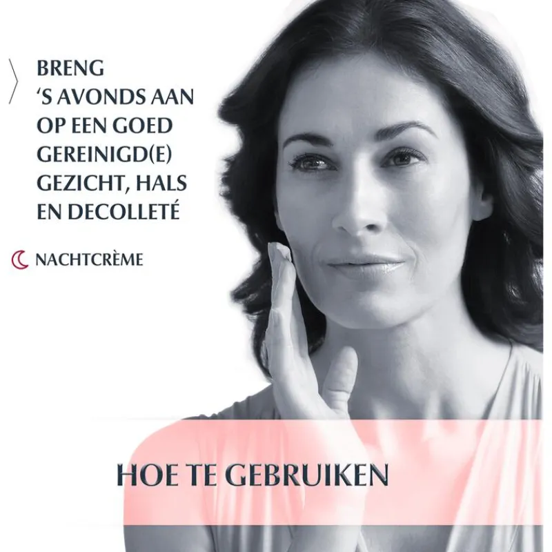 3. De formule met Hyaluronzuur hydrateert de huid intensief en vermindert zelfs diepe rimpels. Deze formule verrijkt met Dexpanthenol stimuleert het huidherstellende proces gedurende de nacht.