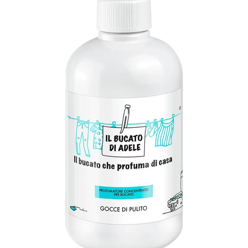 Il Bucato di Adele Wasparfum 500ml Schone Druppels. Een frisse en licht bloemige geur, delicaat maar aanhoudend.Perfect voor wie de geur van vers gewassen wasgoed altijd bij zich wil dragen: de lichte en muskusachtige tonen geven je kleding onmiddellijk een gevoel van frisheid.