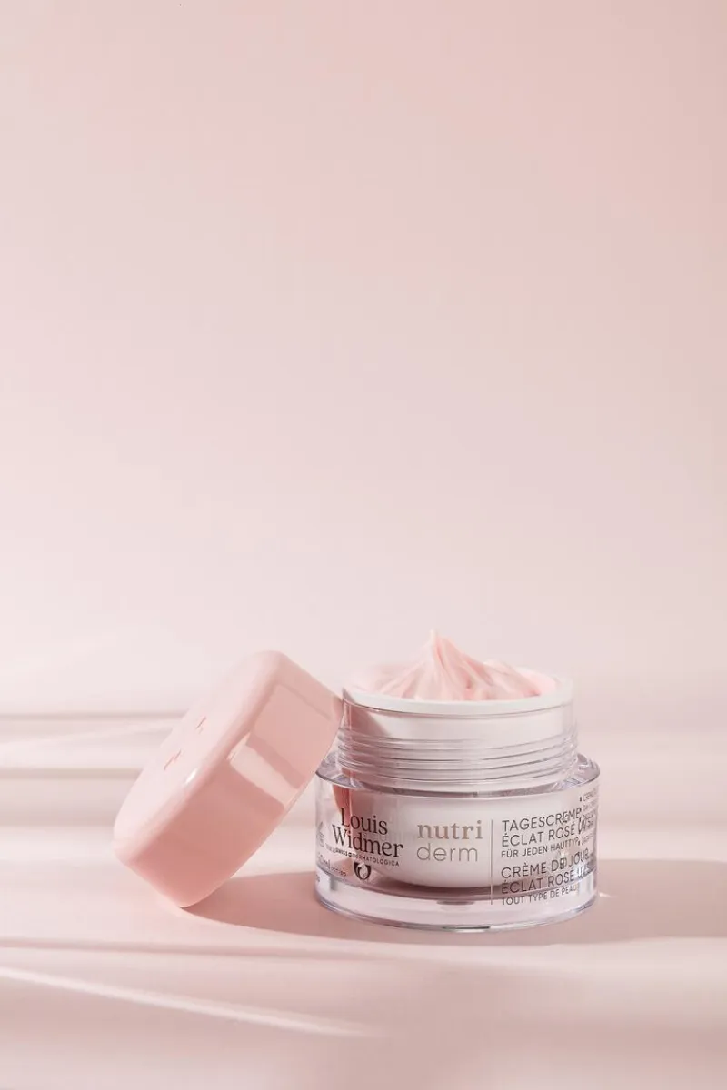 Louis Widmer nutriderm Dagcrème Éclat Rosé UV 50 is een voedende dagcrème met hoge UV-bescherming en Gatuline® Radiance.