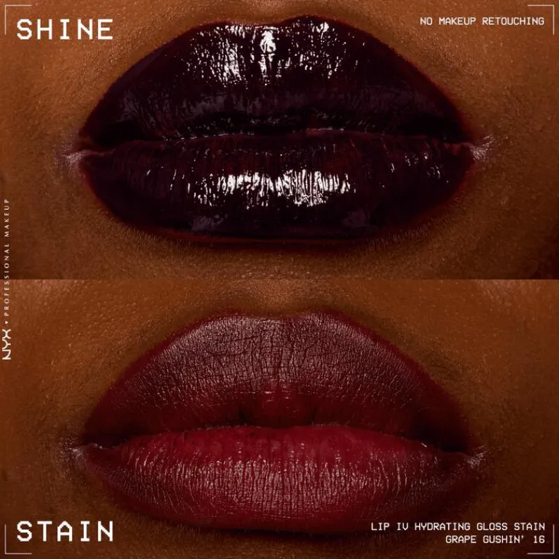 NYX Professional Makeup Lip IV Hydraterende Lipgloss is de ultieme lipgloss voor iedereen die houdt van een vleugje kleur en hydratatie. Deze hydraterende lipgloss blijft tot wel 12 uur zitten en biedt een instant wet shine finish met een langdurig lipstain-effect. Kies uit de 16 verschillende tinten en laat je lippen stralen met een intense, glossy kleur! Door de geavanceerde formule voelt de NYX Professional Makeup Lip IV Hydraterende Lipgloss licht aan op de lippen voor een verfrissende ervaring. De speciale druppelvormige applicator zorgt voor een precieze applicatie, zodat je met slechts één beweging een hydraterende kleur kunt aanbrengen.