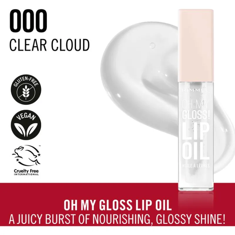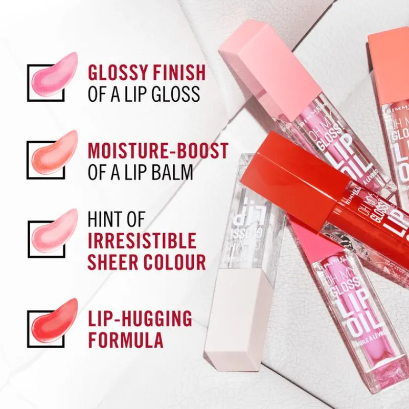Doordrenk je lippen met een juicy dosis voedende glans met Rimmel Oh My Gloss! Maak je lippen voller met een rijke olie die de glanzende finish van een lipgloss combineert met de hydratatieboost van eenlippenbalsem, met een vleugje onweerstaanbare transparante kleur in één van de juicy tinten. Deze dierproefvrije en vegan hydraterende lip oil omvat ook een ‘doe foot’ applicator om de lip oil gemakkelijk en ultrasoepel aan te brengen.