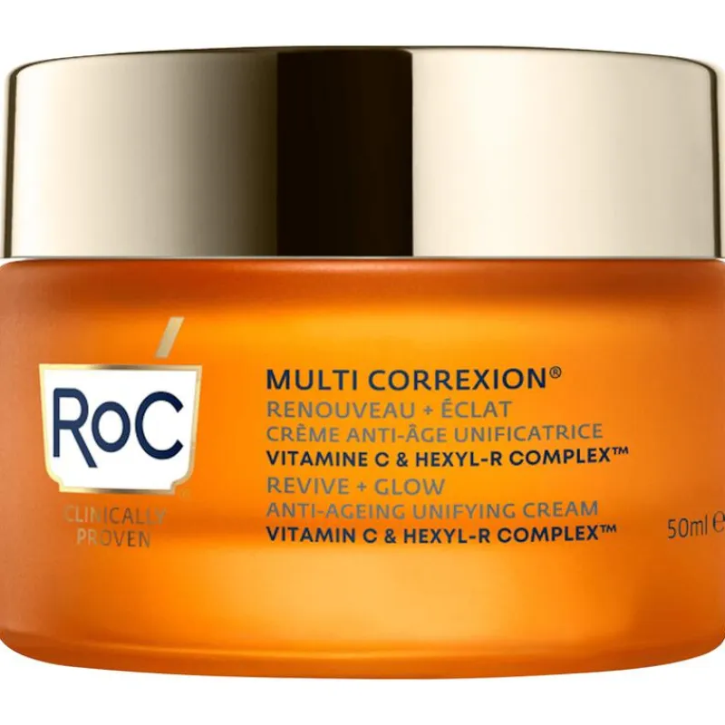 De Revive + Glow-collectie van RoC is geformuleerd met een 10% vitamine C-mengsel waarvan is bewezen dat het een stralende, helderdere en strakkere huid oplevert. Dit mengsel combineert vitamine C in zijn ware vorm, ascorbinezuur, met complementaire antioxidanten, nonapeptide-1 en geavanceerde hydrators, die samenwerken – voor klinisch bewezen resultaten die je niet kunt bereiken met alleen vitamine C.