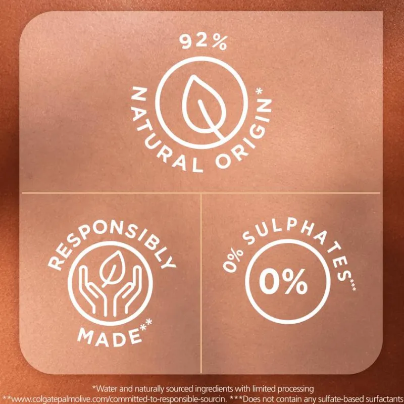 Deze dermatologisch geteste douchegel respecteert de natuurlijke pH van je huid en bevat 0% sulfaten*. Het product bevat bovendien ingrediënten die voor 92% van natuurlijke oorsprong zijn**.