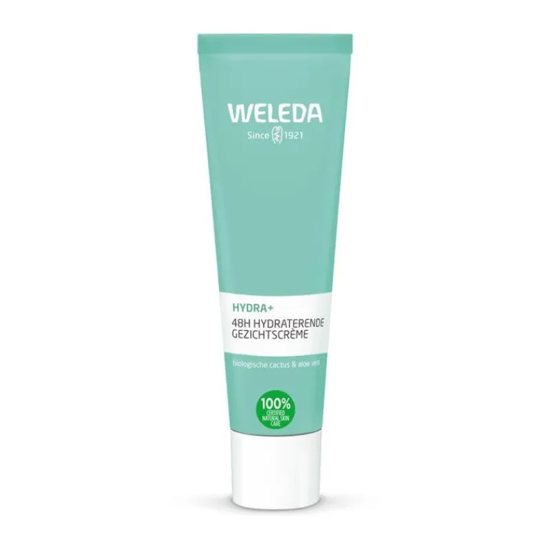Ervaar de kracht van de natuur met WELEDA. HYDRA+ 48h Hydraterende Gezichtscrème van WELEDA biedt directe en langdurige hydratatie voor de normale tot droge huid. Zo hydrateert de ultralichte crème 48 uur lang. Ook kalmeert de 100% natuurlijke crème van WELEDA je huid. Met biologische vijgencactus en Aloë vera.