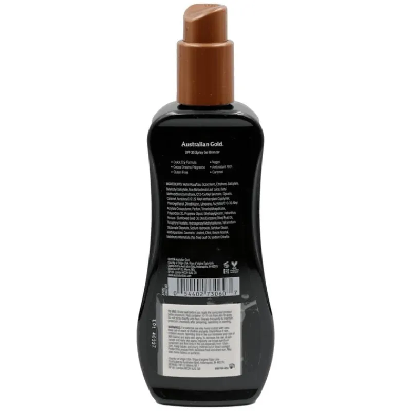 Clearance Australian Gold Tan & Protect Instant Bronzer Zonnebrand Spray Gel SPF30 237 ML