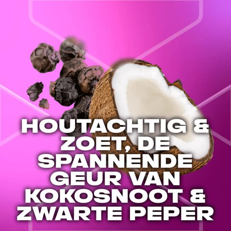 AXE Excite 3-in-1 Douchegel met de houtachtige, zoete geur van verse kokosnoot en zwarte peper laat je 12 uur lang onweerstaanbaar ruiken.