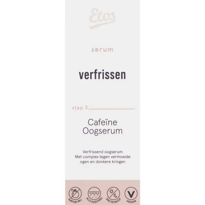 Etos oogserum met cafeïne en een complex uit de centella asiatica helpt donkere kringen onder de ogen te verminderen*.