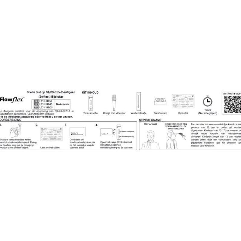 De snelle Acon Biotech Flowflex SARS-CoV-2 antigen test is een test voor de opsporing van het antigeen van SARS-CoV-2 in menselijke neusuitstrijkjes. Het neusuitstrijkje hoeft slechts 2,5 cm diep in de neusholte en de testresultaten kunnen na 15-30 minuten worden afgelezen.