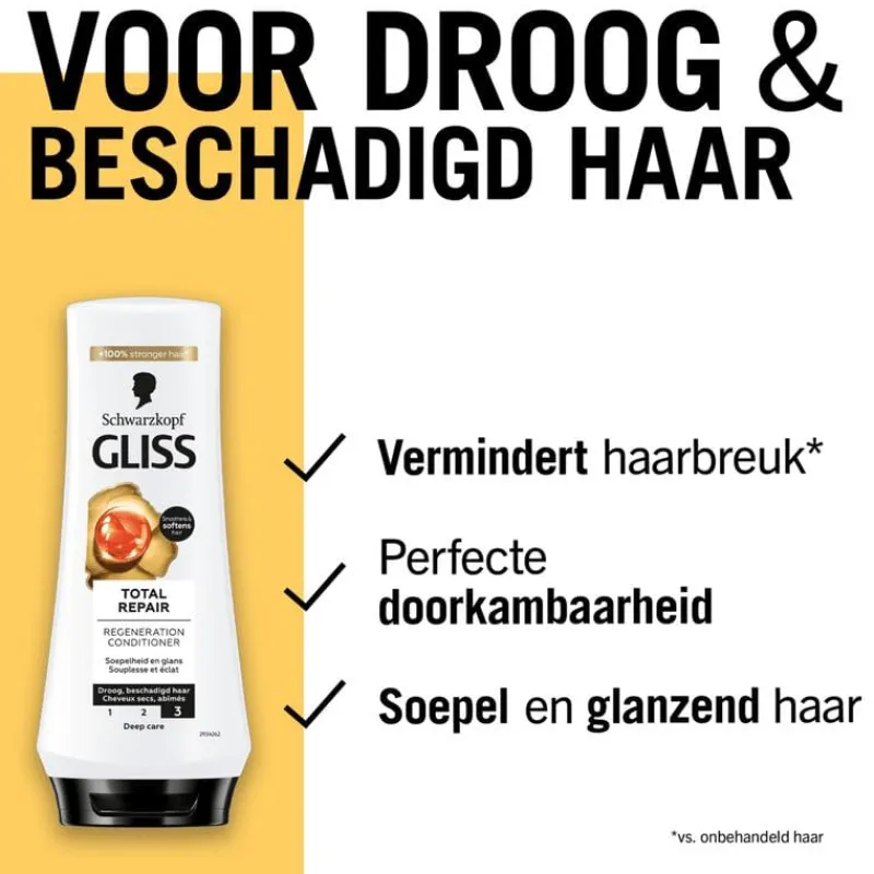 - Gliss Care Level: 3 – Intense verzorging, met diep herstellende formules met hoogwaardige ingrediënten.