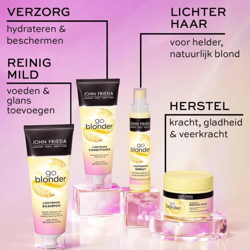 Bevrijd jezelf van pluizig haar met de John Frieda Miraculous Recovery Conditioner. Deze conditioner herstelt tekenen van schade en vermindert haarbreuk tot wel 98% na slechts één keer gebruiken*. De formule is speciaal ontwikkeld om haarbeschadiging aan te pakken en pluis te bestrijden bij de schubbenlaag, waar schade door hitte, kleuring en mechanische invloeden kan ontstaan. De conditioner bevat ceramiden, een echte skincare-superheld, bekend om het vermogen de vochtbarrière van het haar te helpen herstellen en toekomstige beschadiging te helpen voorkomen. *vs standaard shampoo
