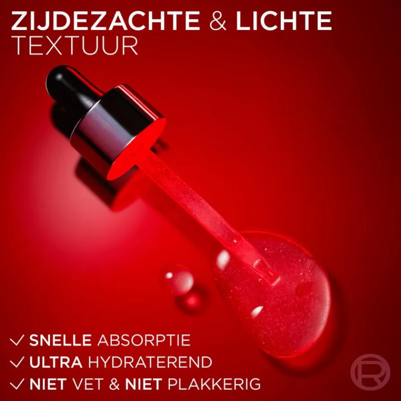 Het L’Oréal Paris Revitalift Laser Serum is de anti-aging routine voor thuis. Het is een krachtig anti-ageing serum dat verrijkt is met drie krachtige actieve ingrediënten: tri-peptiden, hyaluronzuur en vitamine C*. Dit serum is speciaal ontwikkeld om tekenen van huidveroudering aan te pakken. L’Oréal Paris Revitalift Laser Serum bevat tri-peptiden om rimpels en fijne lijntjes te verzachten, terwijl hyaluronzuur de huid intensief hydrateert en voller maakt. Vitamine C* helpt de huid te laten stralen en de teint zichtbaar te egaliseren. De lichte, snel absorberende textuur van het serum maakt het geschikt voor dagelijks gebruik, zonder een vettig of plakkerig gevoel achter te laten. De klinisch bewezen resultaten tonen dat direct de huid gehydrateerd en soepeler aan voelt en de huid gezonder en egaler oogt. Gebruik het serum dagelijks ’s ochtends en ’s avonds na het reinigen van het gezicht. *Vitamine Cg