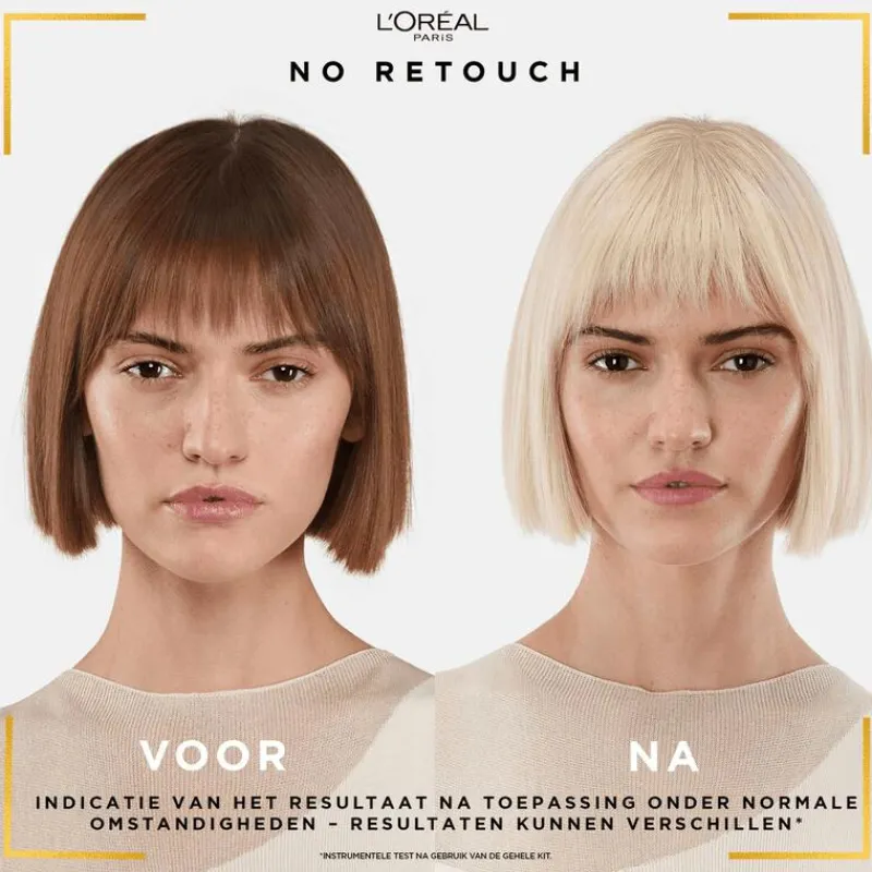 Voorzorgsmaatregelen: Doe een allergie waarschuwingstest 48 uur vóór iedere haarkleurbehandeling ook indien je al eerder een kleurproduct hebt gebruikt. In de gebruiksaanwijzing in de verpakking staat beschreven hoe je dit doet. Volg tijdens het kleuren de gebruiksaanwijzing nauwkeurig op. Hoeveel verpakkingen heb ik nodig? Heb je kort haar of haar tot op je schouders? Dan is één verpakking voldoende. Bij halflang tot lang haar heb je twee verpakkingen nodig. Stap 1: Voorbereiding Voordat je begint: bedek je schouders met een handdoek en trek de bijgevoegde handschoenen aan. Verwijder de dop van de ontwikkelcrème en voeg het ontkleuringspoeder bij de ontwikkelcrème. Draai de dop terug op de aanbrengflacon en schud horizontaal door deze tussen beide handen te rollen. Schud vervolgens krachtig verticaal om een volledig egaal mengsel te verkrijgen. Voeg de ontkleuringscrème toe aan het mengsel. Draai de dop terug op de aanbrengflacon en schud opnieuw horizontaal door deze tussen beide handen te rollen. Schud vervolgens krachtig verticaal om een volledig egaal mengsel te verkrijgen. Draai na het mengen onmiddellijk het uiterste topje van de opbrengflacon af om ongewenst spatten of het spontaan openspringen van het product te vermijden. Draai de applicator tijdens het openen weg van het gezicht. Ga meteen door met het aanbrengen van het product. In geval van verstopping van de opbrengflacon, ontsluit de dop onmiddellijk met een niet-metalen voorwerp, draai de dop terug op de opbrengflacon en schud opnieuw. Stap 2: Aanbrengen Optie 1: Op het gehele haar Voor natuurlijk haar of haar dat meer dan drie maanden geleden gekleurd is Ontwar je haar voorzichtig en breng 2/3 van het mengsel aan op de lengten en punten van het haar. Begin bij de nek en sla de eerste 3 centimeter van de haaraanzet over. Laat het ontkleuringsmengsel 15 tot 20 minuten inwerken. Breng het resterende mengsel aan op de haaraanzet. Masseer in het gehele haar om het haar volledig met het mengsel te bedekken. Laat 15 tot 25 minuten inwerken. Overschrijd nooit de maximale inwerktijd van 45 minuten. Om te constateren of het haar voldoende is verhelderd, verwijder je het mengsel van een plukje haar met je vingers terwijl je de handschoenen draagt. Wanneer de kleur nog niet voldoende verhelderd is, bedek je het plukje haar opnieuw met het reeds aangebrachte mengsel en laat je het langer inwerken. Optie 2: Uitgroei bijwerken Voor haar dat reeds ontkleurd is Breng aan op de haaraanzet. Maak een scheidingslijn, breng het mengsel aan op de haaraanzet langs de lijn met behulp van de applicatiepunt. Masseer het zachtjes in. Laat het ontkleuringsmengsel 30 tot 45 minuten inwerken. Overschrijd nooit de maximale inwerktijd van 45 minuten. Om te constateren of het haar voldoende is verhelderd, verwijder je het mengsel van een plukje haar met je vingers terwijl je de handschoenen draagt. Wanneer de kleur nog niet voldoende verhelderd is, bedek je het plukje haar opnieuw met het reeds aangebrachte mengsel en laat je het langer inwerken. Stap 3: Spoelen Verdeel een beetje lauw water over het haar en masseer licht door. Spoel het haar overvloedig met lauw water totdat het spoelwater helder is. Stap 4: Verzorging Houd de handschoenen aan en verdeel een royale hoeveelheid van de versterkende conditioner over de volledige haarlengte om er zeker van te zijn dat het volledig bedekt is. Vermijd contact met de haaraanzet en de hoofdhuid. Laat 2 minuten inwerken. Een langere inwerktijd zal ervoor zorgen dat het kleurresultaat koeler wordt. Spoel het haar overvloedig uit totdat het spoelwater helder is. Breng de versterkende conditioner opnieuw aan om de pure platinum blonde kleur te beschermen en voor 5 keer sterker haar*. Denk eraan dat je altijd handschoenen draagt tijdens het aanbrengen van de conditioner. *Instrumentele test