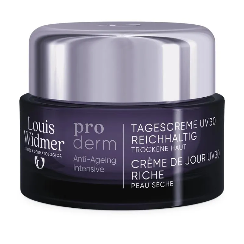 Louis Widmer proderm Dagcrème UV 30 Rijke Textuur is een anti-ageing dagcrème met het biostimulatorencomplex van Louis Widmer en Matrixyl® 3000.