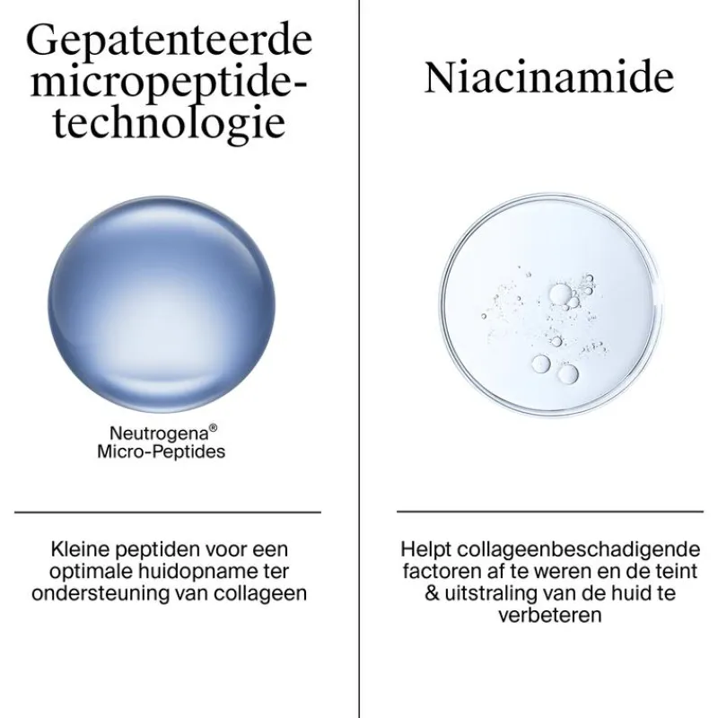 - Micro-peptidetechnologie: micro-peptiden dringen optimaal in de huid om collageen te ondersteunen