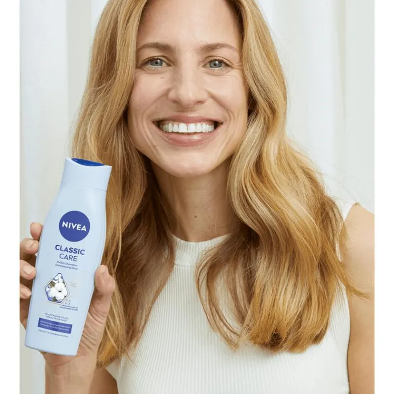 Ontdek NIVEA Classic Care Mild Shampoo, de perfecte balans tussen milde reiniging en intensieve verzorging. Deze shampoo geeft je haar een zachte en gezonde glans, terwijl het de haarstructuur versterkt voor verbeterde veerkracht. Dankzij de pH-geoptimaliseerde formule wordt je hoofdhuid beschermd, en het haar blijft makkelijk doorkambaar, zelfs na een lange dag. Deze milde shampoo is ideaal voor dagelijks gebruik en geeft je haar een natuurlijke, stralende glans zonder het te verzwaren. Perfect voor wie op zoek is naar een shampoo voor zachte glans, sterke haarvezels en verbeterde doorkambaarheid. Verzorg je haar optimaal met de NIVEA Classic Care Mild Shampoo, geschikt voor elk haartype en een gezonde, glanzende uitstraling.