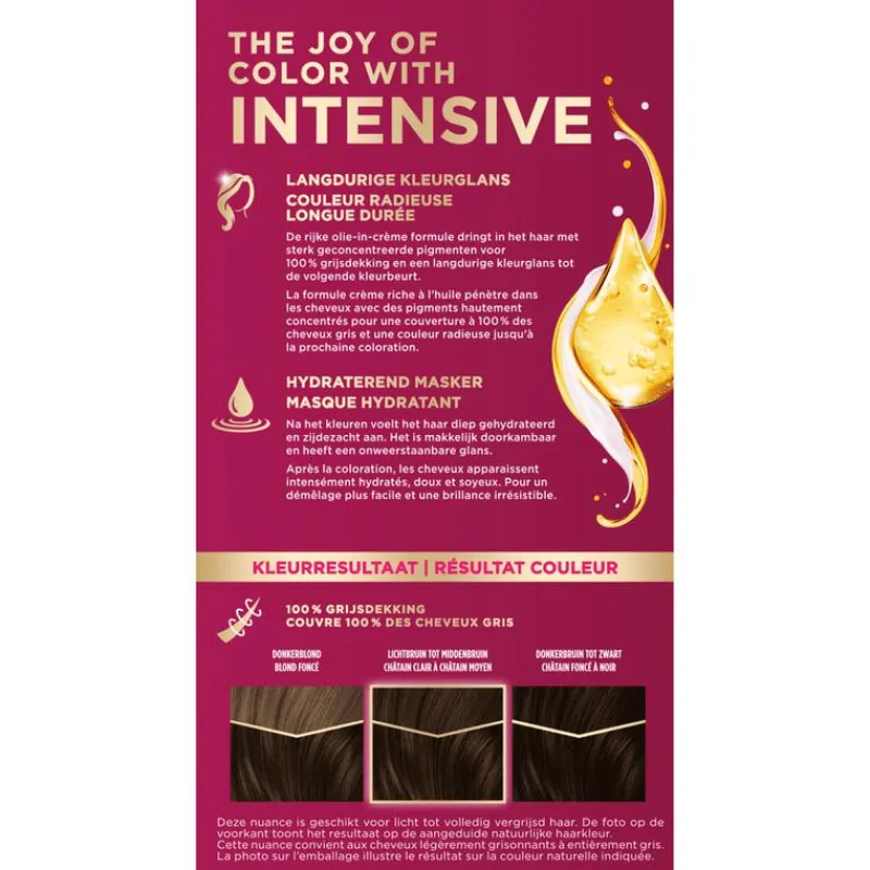 - De rijke olie-in-crème formule dringt in het haar met sterk geconcentreerde pigmenten voor 100 % grijsdekking en een langdurige kleurglans tot de volgende kleurbeurt.