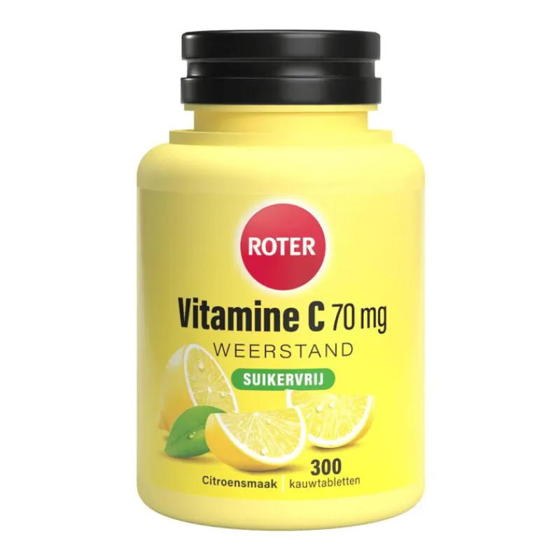 Roter Vitamine C suikervrije kauwtabletten ondersteunen de natuurlijke weerstand. Vitamine C kan je lichaam niet zelf aanmaken. Je moet deze vitamine via voeding binnenkrijgen. Vitamine C zit in groenten, fruit en aardappelen. Vitamine C ondersteunt je natuurlijke weerstand en is nodig voor de vorming van bindweefsel en de opname van ijzer. Vitamine C is een antioxidant, die de weerstand ondersteunt. Het draagt bij aan de bescherming van gezonde cellen en weefsels tegen vrije radicalen. Vitamine C is ook van belang voor het zenuwstelsel en kan het helpen vermoeidheid te verminderen. Inname van vitamine C bevordert de energiestofwisseling en verhoogt het ijzergehalte in het bloed. Vitamine C heeft een positief effect op de weerstand tijdens en na lichamelijke inspanning.