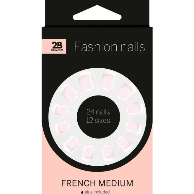 2B Fashion Nails French MediumMooie en comfortabele kunstnagels. Inclusief nagellijm. 24 nagels in 12 verschillende maten. Met de 2B Fashion Nails French Medium geniet je tot wel 7 dagen van mooie en comfortabele kunstnagels. De nagels zijn flexibel bij de nagelriem, zodat ze niet in je huid drukken en hebben een sterke tip om afbreken te voorkomen. Doordat elk van jouw eigen nagels uniek is bevat deze verpakking 24 nagels in 12 verschillende maten, dan heb je altijd de juiste bij de hand. Ook handig, deze French manicure set wordt geleverd met een tube lijm.
