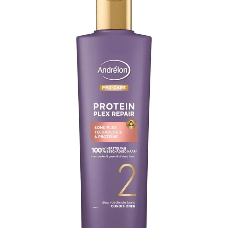 De Andrélon Pro-Care Protein Plex Repair Conditioner herstelt beschadigd haar en beschermt tegen toekomstige schade waardoor je beschadigde haar 100% herstelt* en je tot 94% minder last hebt van gespleten punten**.