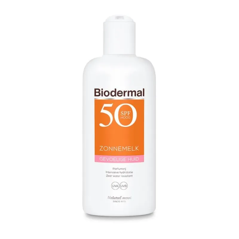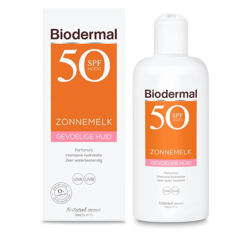 Biodermal gevoelige huid Zonnemelk SPF 50 is parfumvrij en heeft geavanceerde UVB-/UVA-filters voor een directe en aanhoudende bescherming. Deze zonnemelk bevat ook het Triple Moist Complex dat zorgt voor directe, diepe, intensieve en langdurige hydratatie van de huid. De formule in de zonnemelk is geschikt voor de gevoelige huid, is niet plakkerig of vet en trekt snel in.