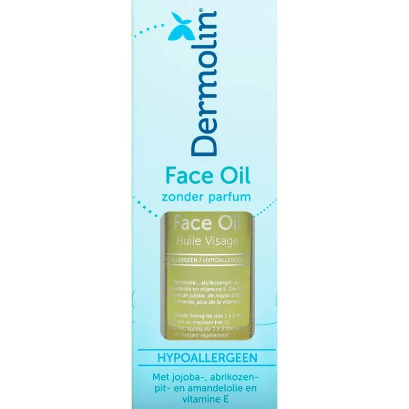 Dermolin Face Oil kalmeert, voedt, verzorgt en hydrateert intensief en langdurig. Met jojobaolie, abrikozenpitolie, amandelolie en vitamine E. Speciaal geschikt voor de gevoelige en droge tot zeer droge huid.