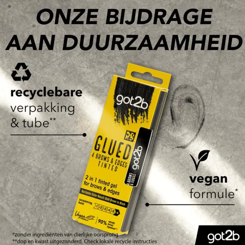 got2b Tinted Glued 4 Brows & Edges maakt je wenkbrauwen direct zichtbaar voller en fixeert je haarlijn tot 24 u. Met deze gekleurde en dermatologisch geteste gel kan je kleuren en stylen in één stap.