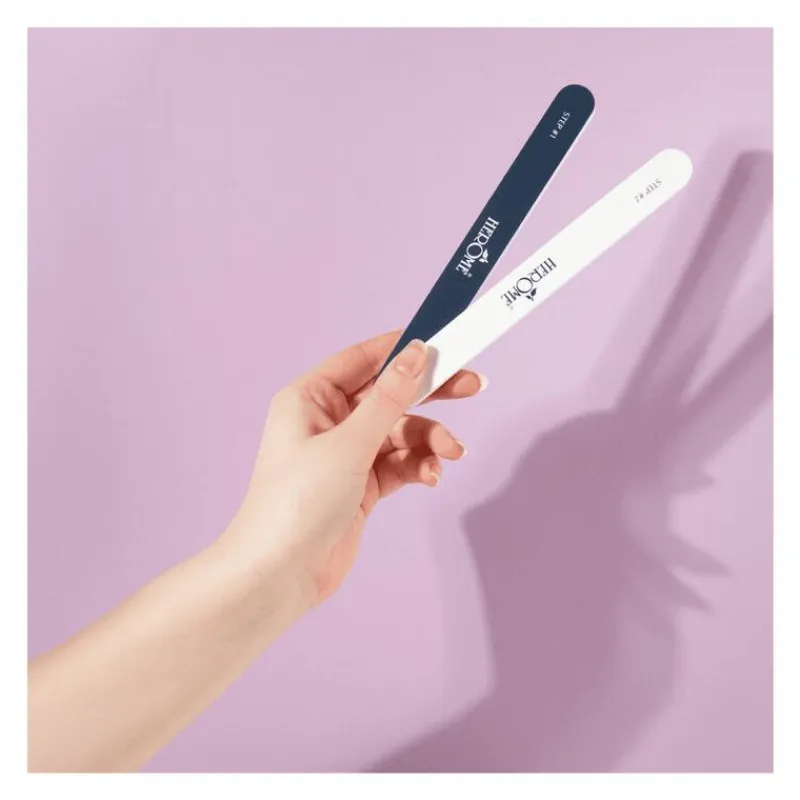 Stap 1: Gebruik het blauwe gedeelte om het nageloppervlak glad te vijlen. Let op: doe dit slechts één keer per maand om te voorkomen dat de nagels te dun worden.