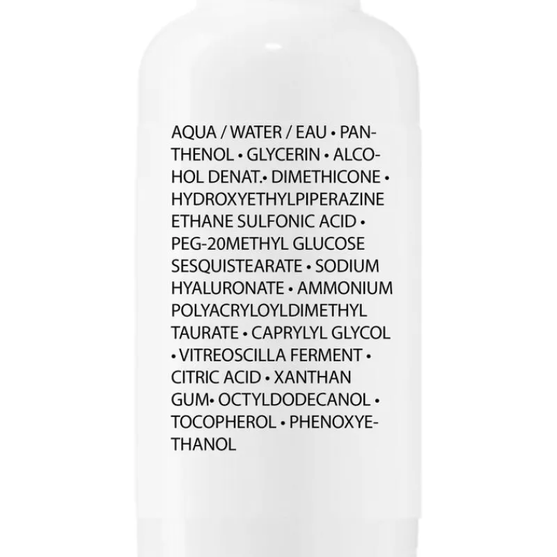 AQUA / WATER / EAU • PANTHENOL • GLYCERIN • ALCOHOL DENAT. • DIMETHICONE • HYDROXYETHYLPIPERAZINE ETHANE SULFONIC ACID • PEG-20 METHYL GLUCOSE SESQUISTEARATE • SODIUM HYALURONATE • AMMONIUM POLYACRYLOYLDIMETHYL TAURATE • CAPRYLYL GLYCOL • VITREOSCILLA FERMENT • CITRIC ACID • XANTHAN GUM • OCTYLDODECANOL • TOCOPHEROL • PHENOXYETHANOL