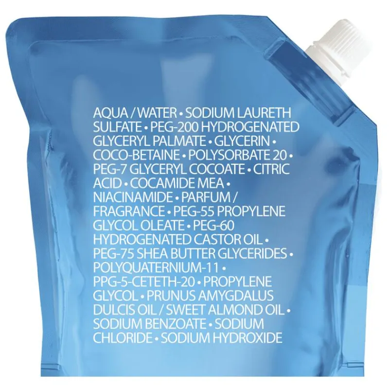 AQUA / WATER / EAU • SODIUM LAURETH SULFATE • PEG-200 HYDROGENATED GLYCERYL PALMATE • GLYCERIN • COCO-BETAINE • POLYSORBATE 20 • PEG-7 GLYCERYL COCOATE • PPG-5-CETETH-20 • CITRIC ACID • SODIUM HYDROXIDE • NIACINAMIDE • PRUNUS AMYGDALUS DULCIS OIL / SWEET ALMOND OIL • COCAMIDE MEA • PEG-55 PROPYLENE GLYCOL OLEATE • PEG-60 HYDROGENATED CASTOR OIL • PEG-75 SHEA BUTTER GLYCERIDES • POLYQUATERNIUM-11 • PROPYLENE GLYCOL • SODIUM CHLORIDE • DISODIUM EDTA • SODIUM BENZOATE • PARFUM / FRAGRANCE
