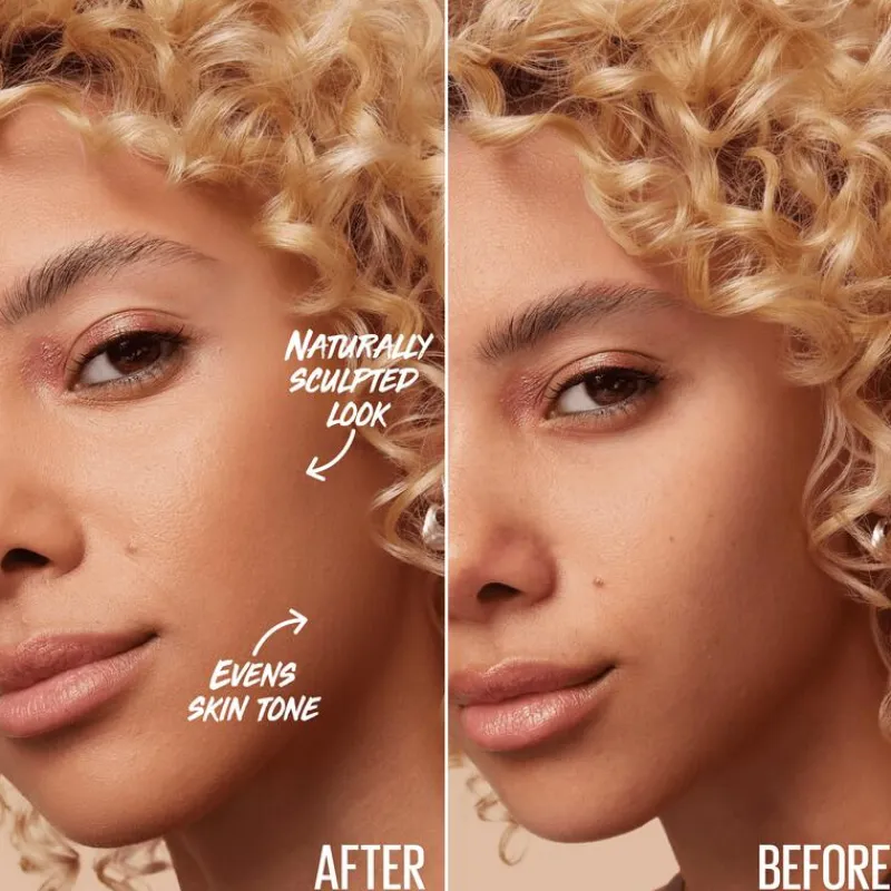 Stap 1: Breng de licht-getinte foundation stick aan op de jukbeenderen, onder de ogen en kin om te contouren. Stap 2: Definieer de haarlijn en onder de jukbeenderen met een donkere tint.
