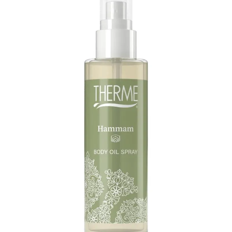 Therme Hammam Body Oil Spray is een rijke lichaamsolie die direct wordt opgenomen. De olie werkt voedend en verzorgend en laat de huid stralen. Geniet van de oriëntaalse geur van cederhout gecombineerd met warme oosterse kruiden en aromatische bergamot.