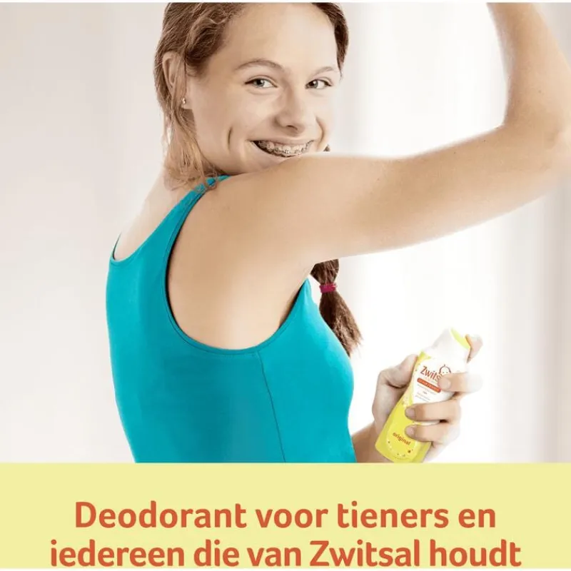 Zwitsal weet hoe belangrijk een fijne en vertrouwde geur is. Zwitsal Original Deodorant Spray is een milde deodorant met de bekende Zwitsal geur. Het laat je urenlang lekker fris en heerlijk ruiken, hiermee kun je vertrouwen op zachte bescherming de hele dag door. De deodorant is, behalve voor alle liefhebbers van de geur van Zwitsal, ook uitermate geschikt voor tieners. In de puberteit verandert het lichaam en gaan jonge vrouwen op zoek naar hun eerste deodorant met een lekkere geur. Zwitsal Original Deodorant Spray biedt dagelijkse zachtheid met de vertrouwde geur van Zwitsal. De zachte verzorging is geschikt voor de gevoelige huid en zorgt 24 uur voor die heerlijke, iconische geur.