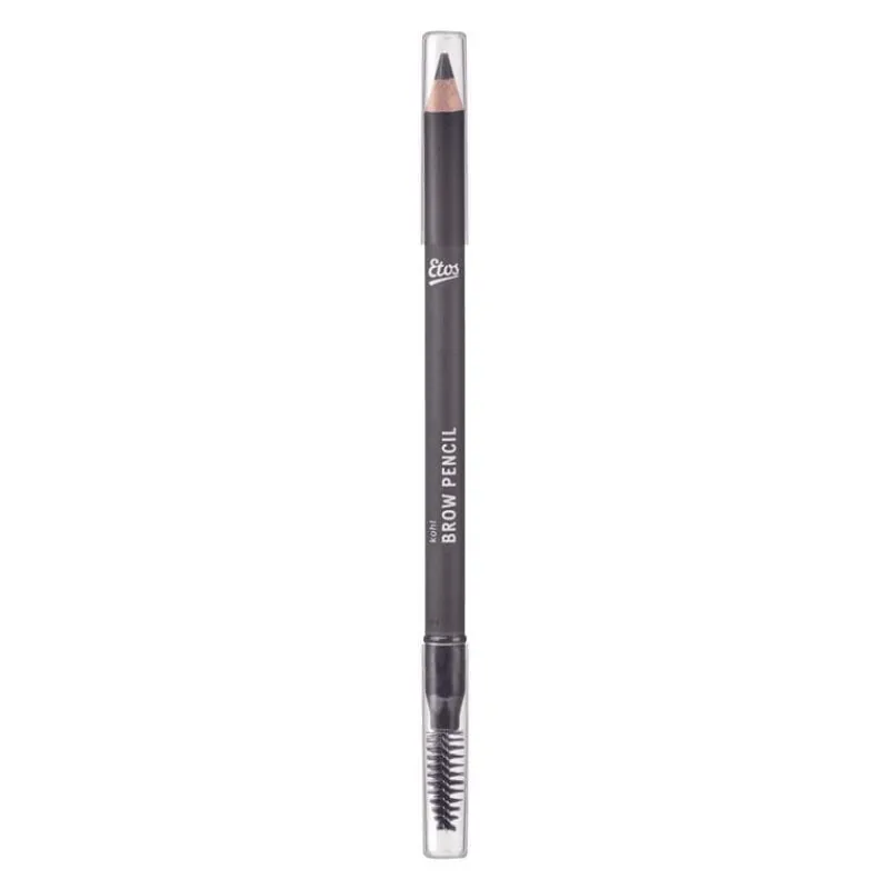 Met de Etos Kohl Brow Pencil Brown Black geef je jouw wenkbrauwen een intense, diepbruine kleur met een hint van zwart. Dit potlood heeft een stevige punt voor het tekenen van fijne haartjes en een spooley brush om je wenkbrauwen perfect in model te brengen en de kleur te blenden.