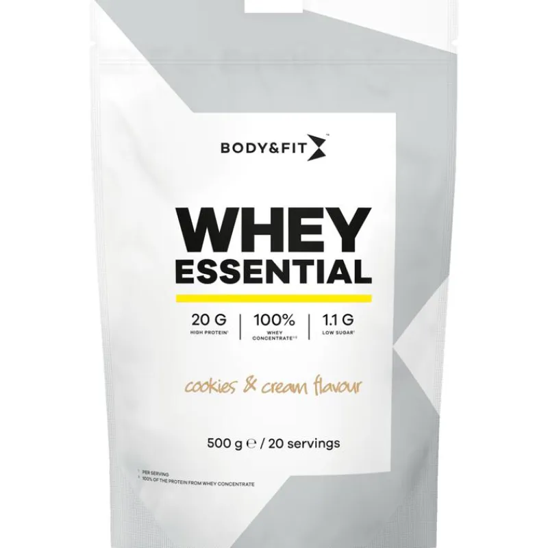 Whey Essential van Body&Fit is een kwalitatieve eiwitshake die jou helpt je fitnessdoelen te bereiken. De blend van pure wei-eiwitten ondersteunt spieropbouw- en herstel na je training, en zorgt voor een heerlijk romige smaak en textuur. Perfect voor sporters die op zoek zijn naar een dagelijkse, no-nonsense eiwitbron van topkwaliteit.