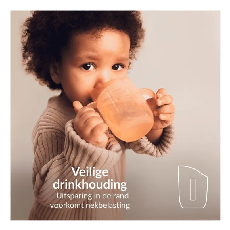 De beker is licht in gewicht, compact en voorzien van ergonomische handvatten die perfect in kleine handjes passen. De transparante kleur maakt het eenvoudig om de hoeveelheid drank in de beker te volgen.