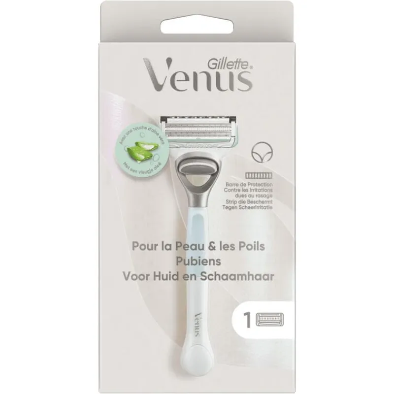Het Venus scheermesje voor huid en schaamhaar is speciaal ontworpen om de huid rond de schaamstreek te helpen beschermen tegen scheerirritatie.