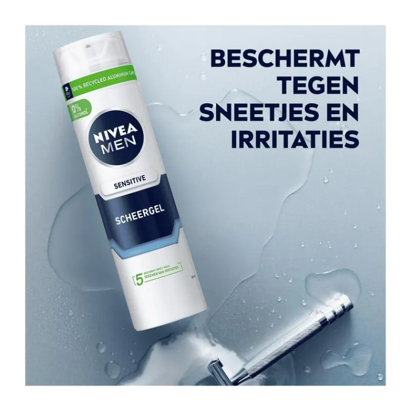 Vind je jouw huid geïrriteerd, branderig of vertoont het andere ongemakken? Dan biedt NIVEA de oplossing met hun scheergel, alcoholvrij*, verrijkt met kalmerende kamille en hydraterende vitamine E. Dermatologisch getest en bewezen geschikt voor dagelijks gebruik.