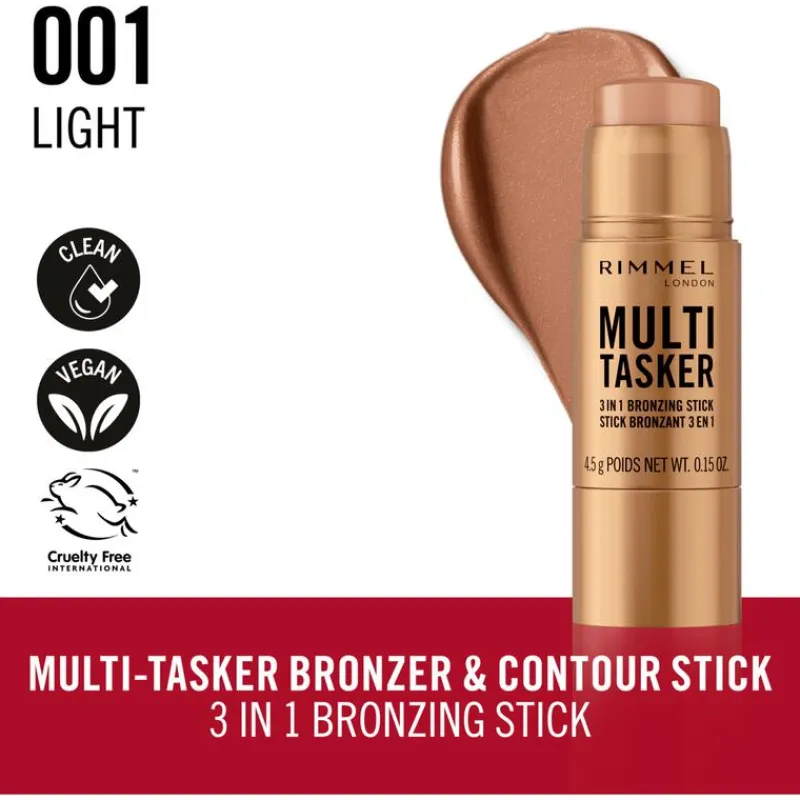 - Deze veelzijdige Rimmel Bronzing Stick heeft een romige vegan formule die moeiteloos te vervagen is, voor een makkelijke, mooi gedefinieerde zongebruinde glow.