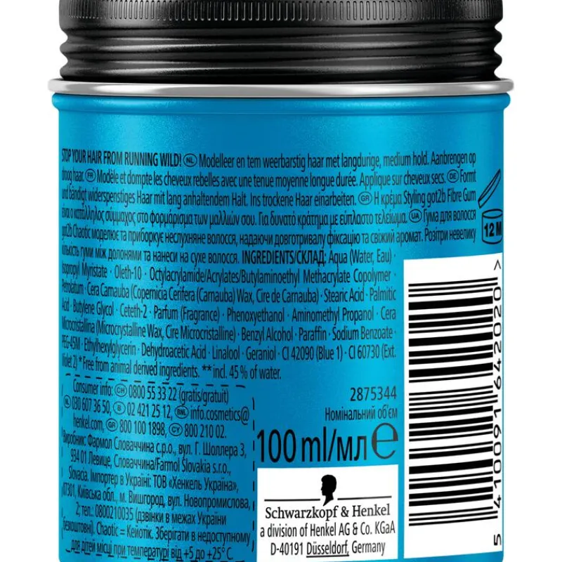 Got2b Chaotic Modelling Fibre Gum brengt het haar in model en temt het wilde haar. De langdurige chill hold houdt je onhandelbaar haar in bedwang en laat een frisse geur achter. De formule is vegan*