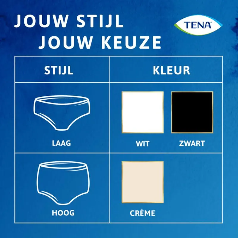 TENA Silhouette Plus Low Waist Black discrete wegwerpbroekjes bieden bescherming tegen matig tot zwaar urineverlies. Ideaal voor na de bevalling.