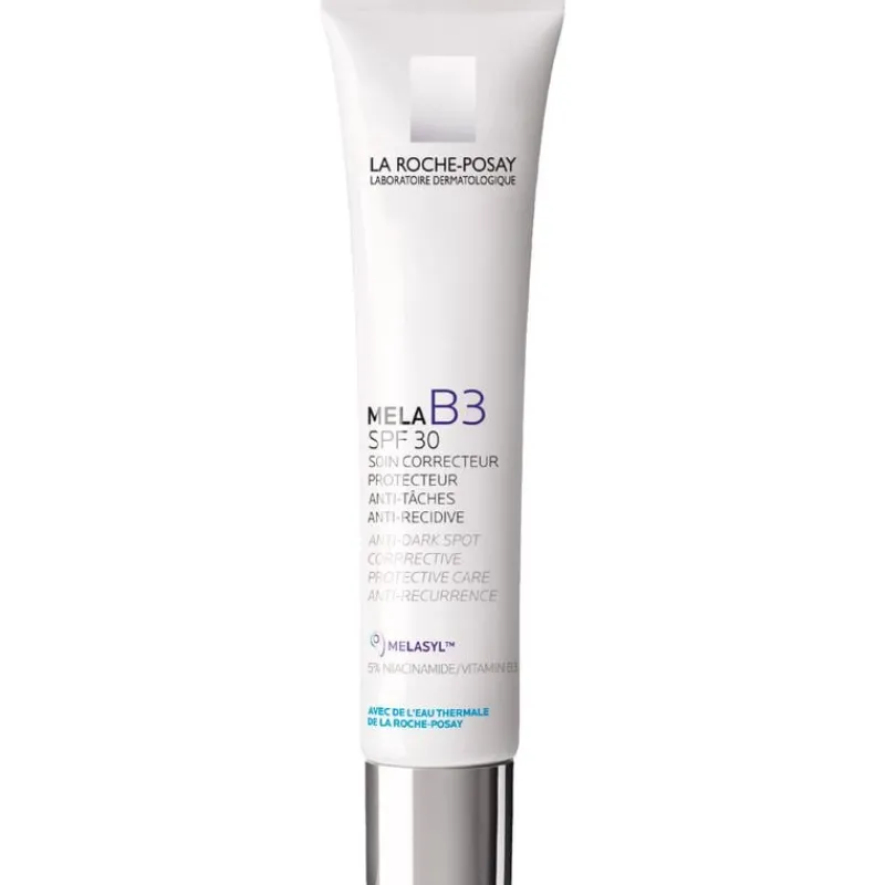 La Roche-Posay Mela B3 Crème SPF30 is een beschermende gezichtscrème tegen pigmentvlekken. Geschikt voor alle huidtypes, zelfs voor een gevoelige huid, en in het bijzonder voor de huid die gevoelig is voor pigmentvlekken. De formule is verrijkt met ons nieuwe revolutionaire gepatenteerde actieve ingrediënt Melasyl (dat overtollige melanine verwijdert voordat het de huid aantast) waardoor de crème pigmentvlekken helpt verminderen, hyperpigmentatie als gevolg van de zon helpt voorkomen en een egaliserende en verhelderende werking heeft. De Crème bevat 5% geconcentreerde niacinamide om de huid te kalmeren en de huidbarrière te versterken, en thermaal bronwater van La Roche-Posay, dat op natuurlijke wijze hydrateert en verzacht.