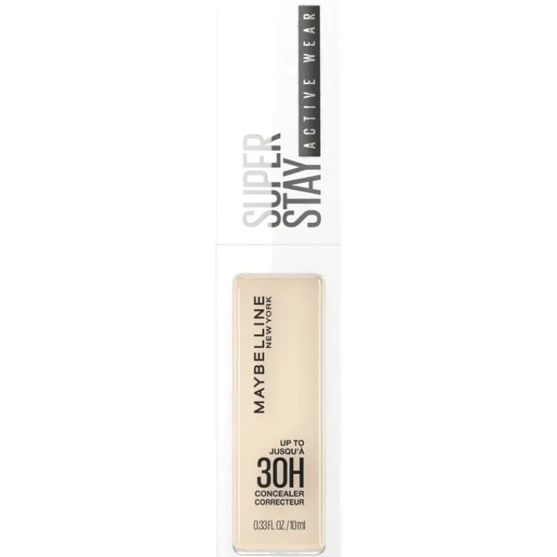 SuperStay Active Wear 30H Concealer, eerst bekend als SuperStay Under Eye Concealer, heeft onze hoogste dekking voor een super egale uitstraling van de huid die dag en nacht blijft zitten – tot 30 uur*. De langhoudende concealer bedekt donkere kringen en wallen tot 30 uur lang voor een wakkere blik. De Maybelline concealer vervaagt niet, gaat niet in de lijntjes van je gezicht zitten én is waterproof voor een flawless finish wat het weer je ook brengt. De vegan** formule is super gepigmenteerd waardoor de dekking van de Maybelline concealer heel hoog. Door de lichte textuur ademt de formule nog wel en voelt comfortabel aan. Zo worden donkere kringen en wallen in één applicatie bedekt voor frisse uitstraling terwijl jij je comfortabel voelt.
