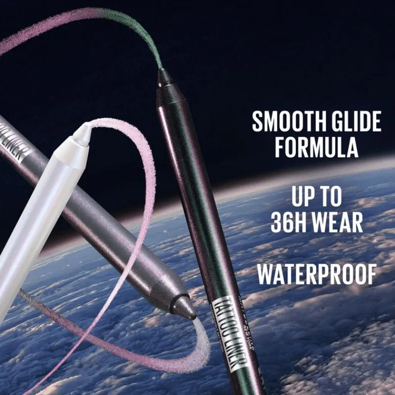 Ontdek Maybelline TattooStudio Sharpenable Gel Pencil! Ervaar intense kleur die tot wel 36 uur aanhoudt, nu in NIEUWE Galactic duochrome tinten die schitteren met kosmische glans. De romige, soepele formule maakt het gemakkelijk om precieze, opvallende looks te creëren. Verken de diepten van de ruimte met deze nieuwe tint! Deze smudge-resistente, veegvaste, vervagingsbestendige en waterproof formule is allergie- en oogheelkundig getest, waardoor je deze de hele dag (en nacht!) comfortabel kunt dragen