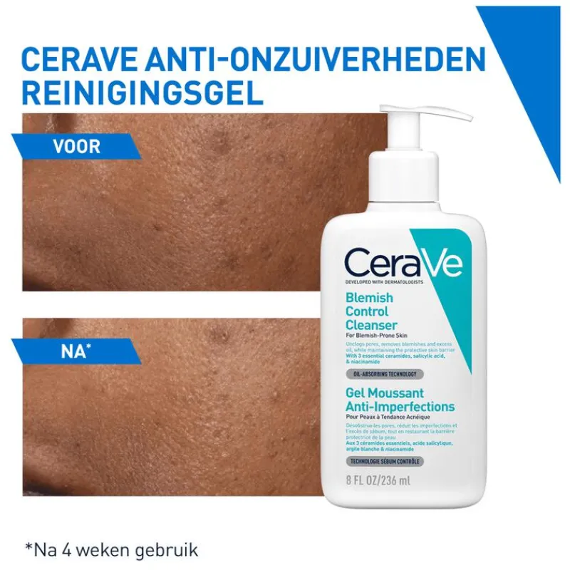 CeraVe Anti-Onzuiverheden Reinigingsgel is een reiniging tegen imperfecties geformuleerd met 2% salicylzuur om onzuiverheden en puistjes aan te pakken en mee-eters te verminderen.