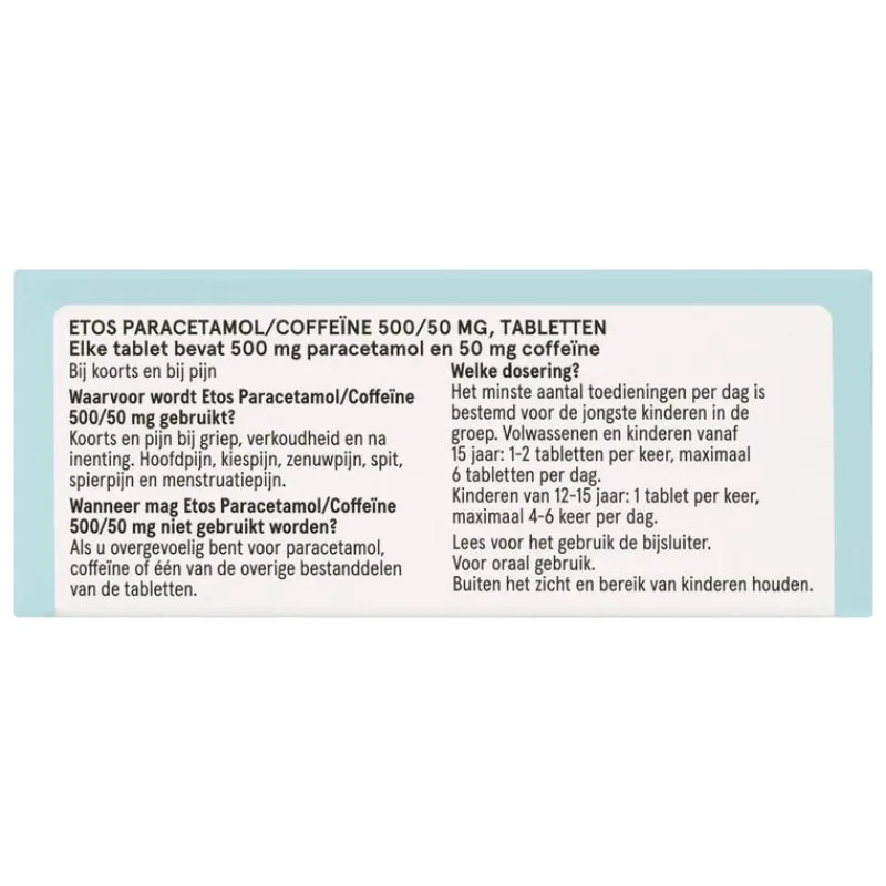 #Het is belangrijk om niet te veel te gebruiken, want dan kan dit geneesmiddel lever- en nierklachten geven. Wij adviseren u voor gebruik de bijsluiter te lezen.#Dit geneesmiddel geeft risico op hoofdpijn bij lang gebruik tegen hoofdpijn. Wij adviseren u voor gebruik de bijsluiter te lezen.#Stop direct met het gebruik bij huiduitslag of wondjes in de mond en neem contact op met een arts.